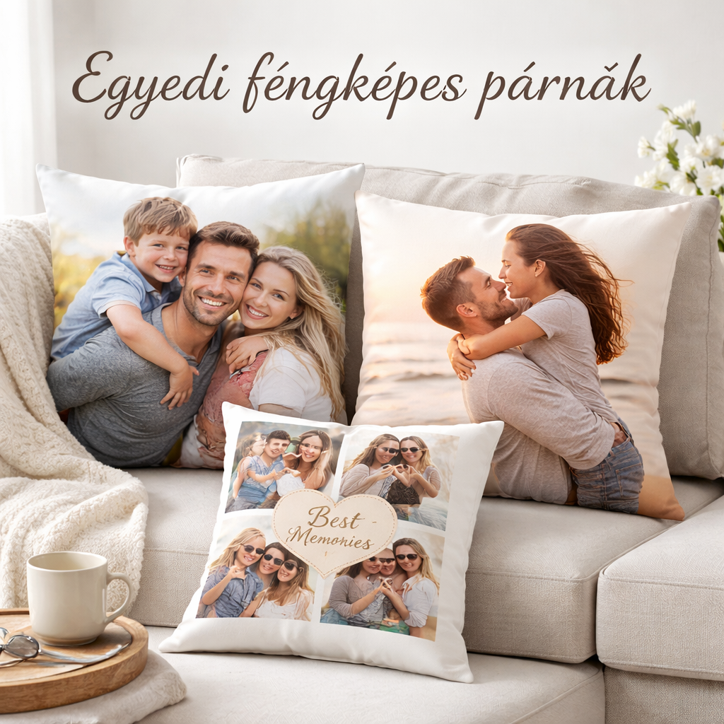 Tedd igazán személyessé az otthonod vagy ajándékozz maradandó élményt egyedi fényképes párnáinkkal! Ezek a különleges díszpárnák lehetőséget adnak arra, hogy a kedvenc emlékeid, családi fotók, szeretteid képei vagy akár egy fontos pillanat mindig szem előtt legyen.